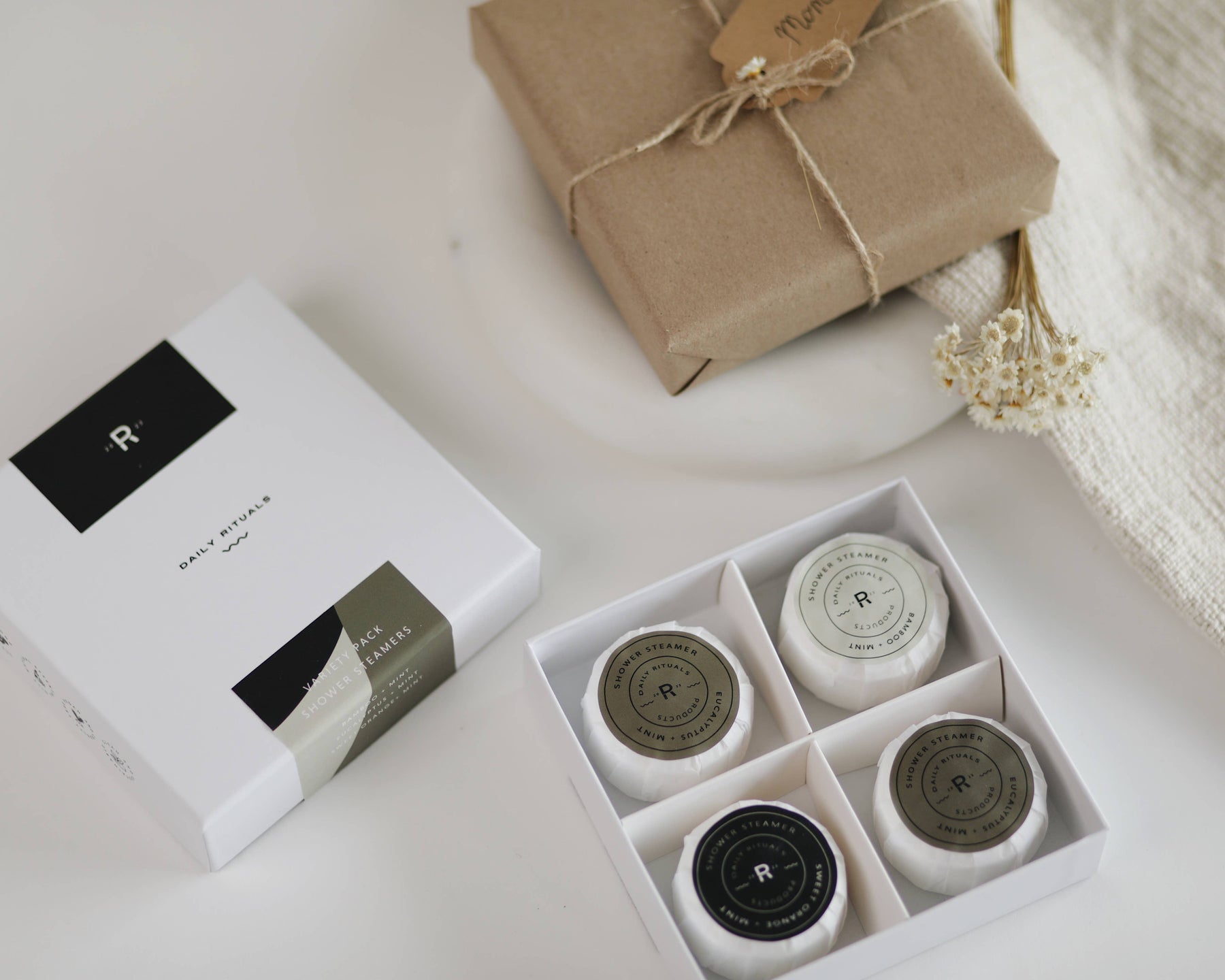 Crafted with natural ingredients like baking soda and essential oils, our steamers are free from harsh chemicals — for a clean, invigorating experience every time. Each Daily Rituals® pack includes four tablets, making it a thoughtful gift or a treat for yourself.