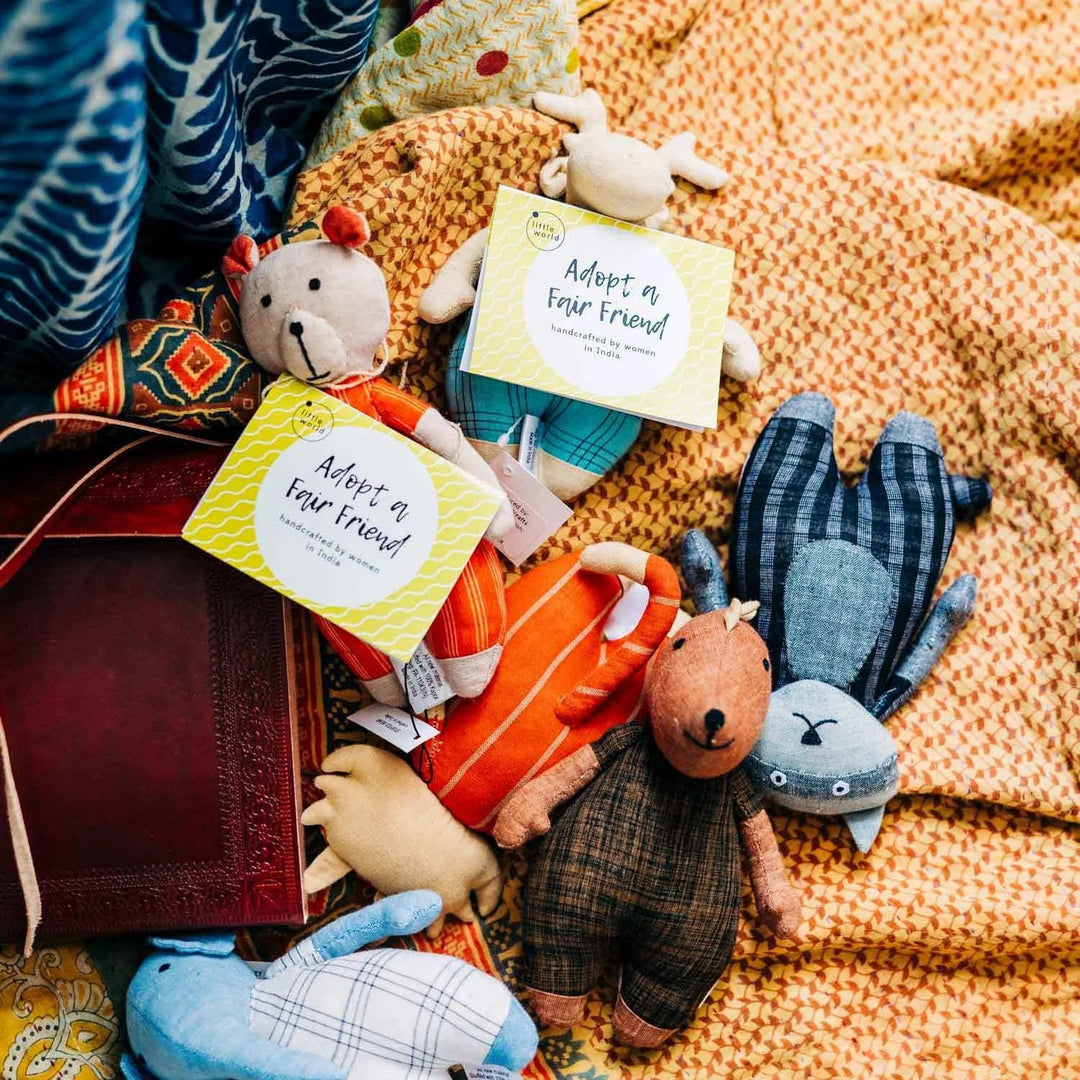 Fair Friends are a budding changemaker's first sidekick! Fair Friends are handmade of cotton, love to cuddle and play make believe. Each Fair Friend comes with a customizable adoption card and fun facts to get to know your new friend.