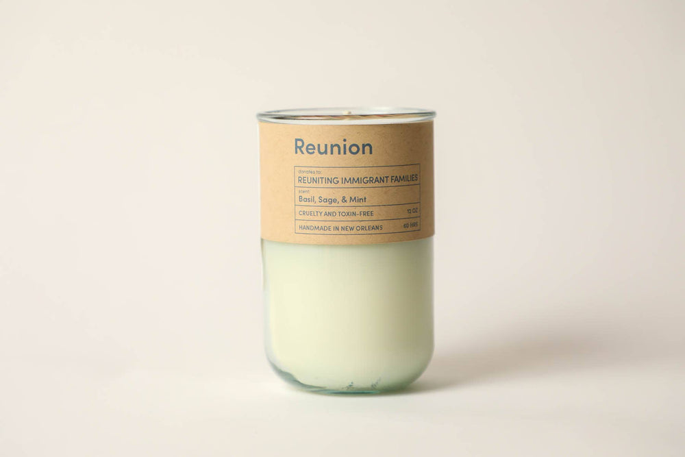 This light scented candle raises funds to help reunite children separated from their families at the U.S. border via RAICES who help families pay bond and legal fees to reunite immigrant / refugee children with their parents. This light scent is a blend of basil, sage, and mint to freshen your home while helping families in need. Recycled and reusable glass jar.
